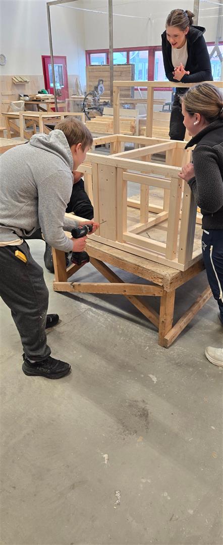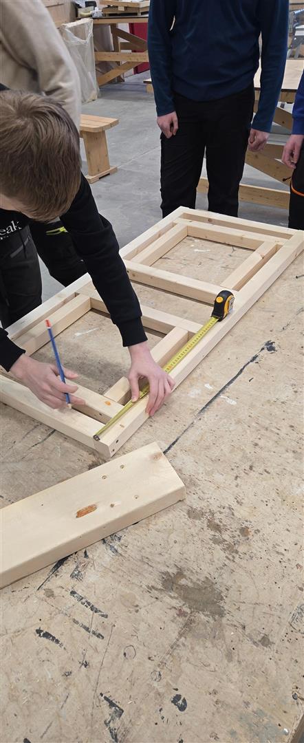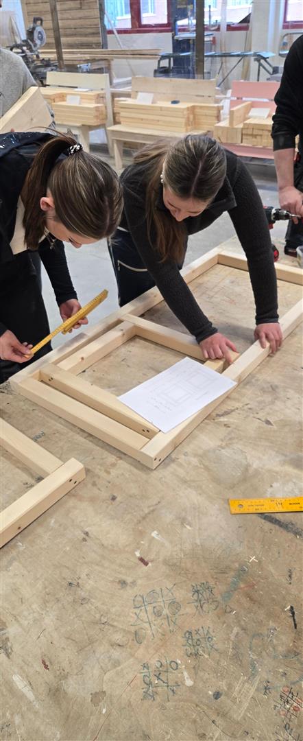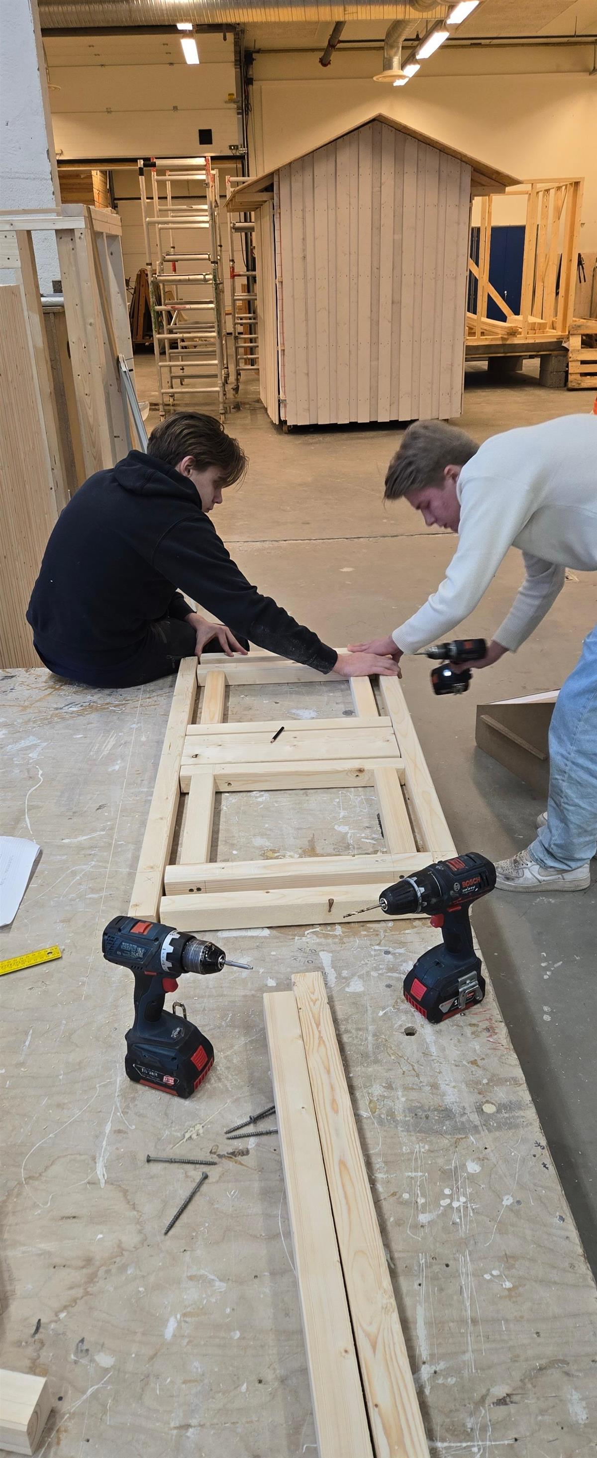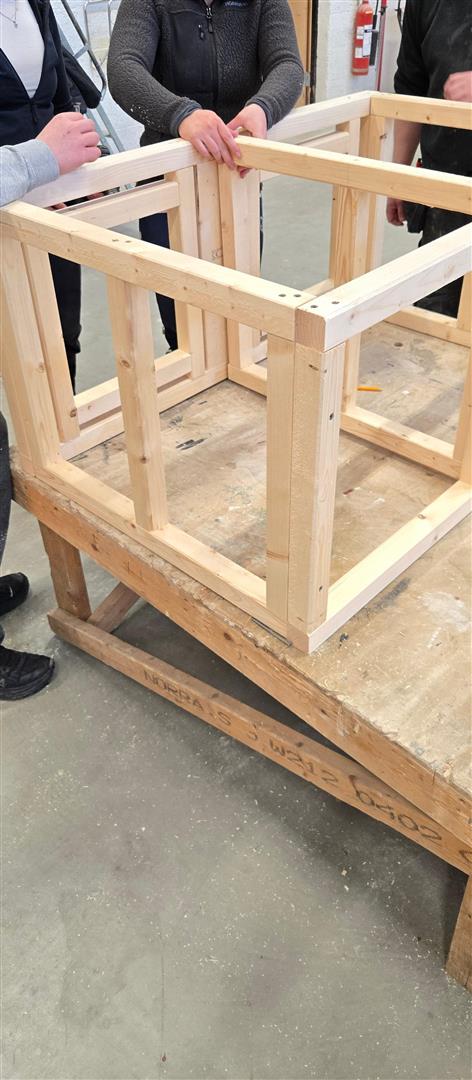 Elevene startet med å bli kjent med arbeidstegningene og måle opp materialene de skulle bruke. Deretter jobbet de i grupper for å sette sammen rammekonstruksjoner, skru sammen sidevegger og sikre at alle delene passet nøyaktig.