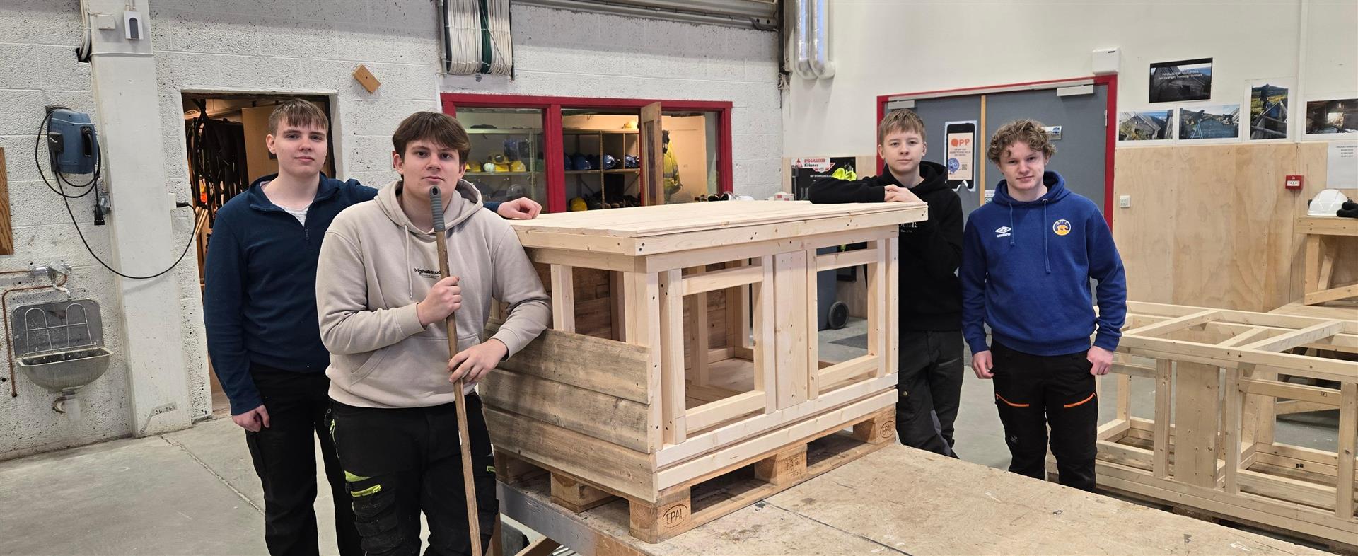 Denne uken hadde Bygg- og anleggsteknikk besøk av elever fra 10. trinn ved Sandnes og Bjørnevatn skole. I løpet av dagen fikk elevene prøve seg på ekte verkstedarbeid, der presisjon, samarbeid og problemløsning sto i sentrum. Oppgaven deres var å bidra i byggingen av flere hundehus.