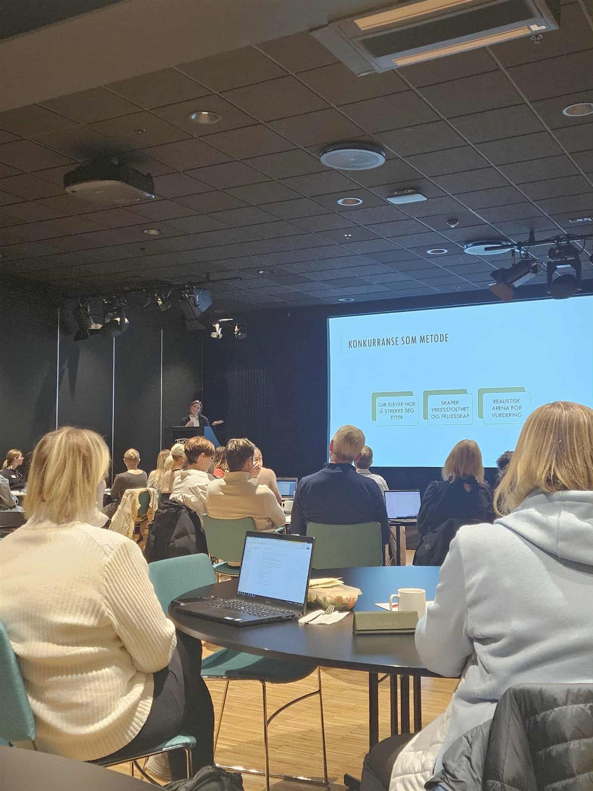 Deltakerne følger med når lærer fra Kirkenes vgs. presenterer hvordan konkurranse kan brukes som læringsmetode.